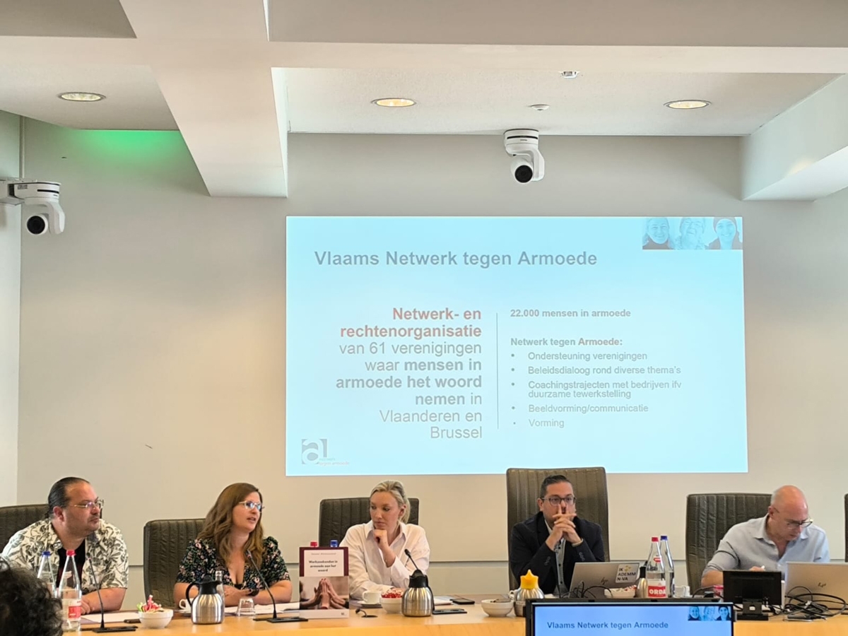 Zowel het Vlaamse als federale regeerakkoord bevat beleidsmaatregelen die een impact zullen hebben op de Vlaamse arbeidsmarkt, zoals de geplande beperking van de werkloosheidsuitkering in de tijd, het beperken van de loopbaancheques of de samenlevingsjobs. Het Netwerk tegen Armoede mocht in de hoorzitting van het Vlaams Parlement de gevolgen van deze maatregelen duiden én advies geven op 19/6/2025. Ervaringsdeskundige Christophe Teirlinck en beleidsmedewerker Sanne Coremans namen het woord in de Commissie voor Economie, Werk, Sociale Economie, Wetenschap en Innovatie.