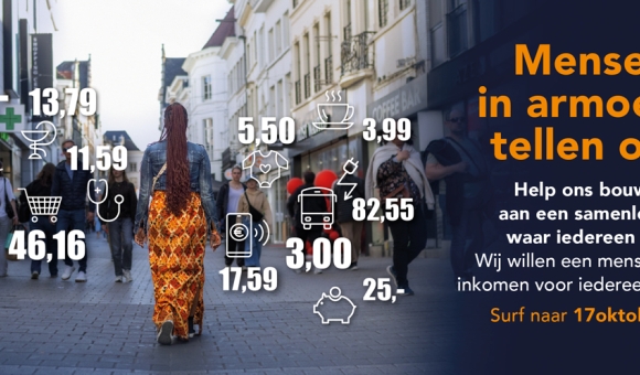 17/09/2025Elke dag rekenen. Huur, eten, medicatie… dat tikt aan. Mensen in armoede moeten constant tellen. Leven in armoede is vaak een kwestie van óverleven. “Armoede begint bij een tekort aan geld. Wij pleiten voor een inkomen boven de armoedegrens voor iedereen. Dat is dé voorwaarde voor een menswaardig leven”, aldus algemeen coördinator Heidi Degerickx van het Netwerk tegen Armoede. Met de campagne ‘Mensen in armoede tellen ook!’ roept het Netwerk tegen Armoede op voor een menswaardig inkomen voor iedereen. Want elke mens telt mee in de samenleving. De campagne rond het recht op een menswaardig inkomen boven de armoedegrens is gestart op 17/9/2025 naar aanleiding van de Werelddag van Verzet tegen Armoede op 17 oktober. Er staan heel wat acties op het programma de komende maand.