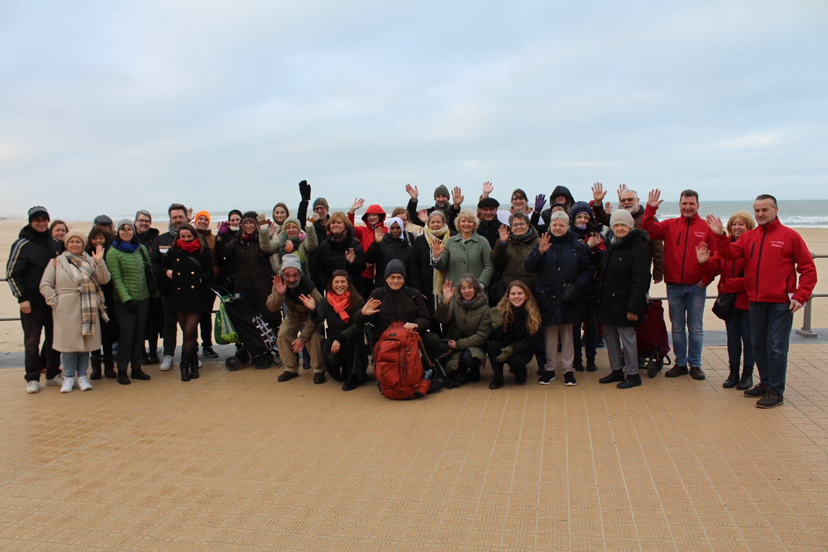 Op maandag 5/2 vond een persmoment op de Zeedijk aan het Casino Kursaal in Oostende plaats voor de start van de wandeltocht.
